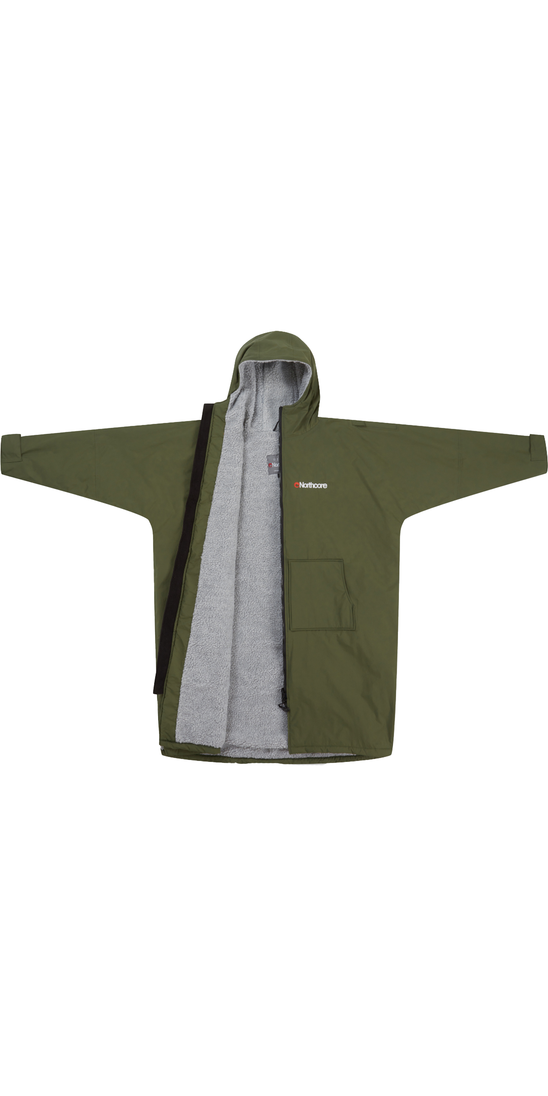 The Sport doesn't stop there as it includes a range of practical design features inspired by years of Northcore adventure experience. There are a selection of multi-use pockets including large external fleece lined pockets to keep hands toasty warm, a large inner pocket for storage of kit, a fleece lined zipped internal pocket for phone or wallet and a velcro closing external shoulder pocket for a phone or small items like a surf wax comb or swimming goggles. The triple panel hood is shaped for an ergonomic fit and has a peaked cap to deflect rain. The wrist cuffs have velcro straps for a personalised fit. The robe has side vents at the base to allow for increased changing mobility and the back panel has been extended and rounded to keep everything covered.